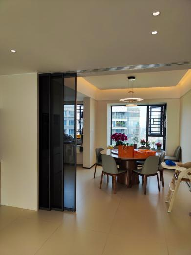 Biasanya, apabila digunakan sebagai ruang gaya terbuka, ia lebih telus dan luas. Apabila pintu ditutup, ruang makan dan makan boleh digunakan serentak tanpa gangguan.